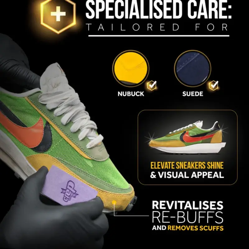 • Cuidado com camurça e nobuck: Remove arranhões e revitaliza.
